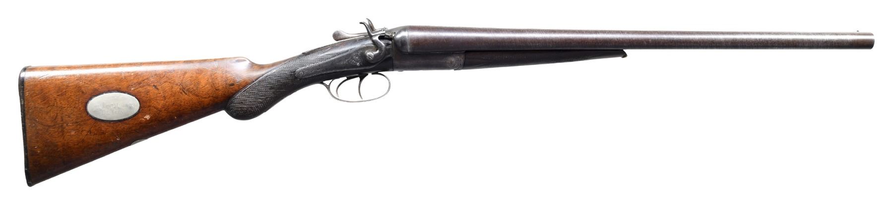 BRITISH SXS HAMMER SHOTGUN WITH PRESENTATION PLATE