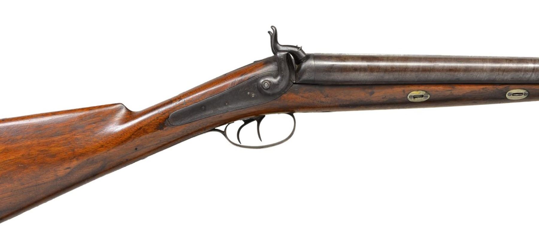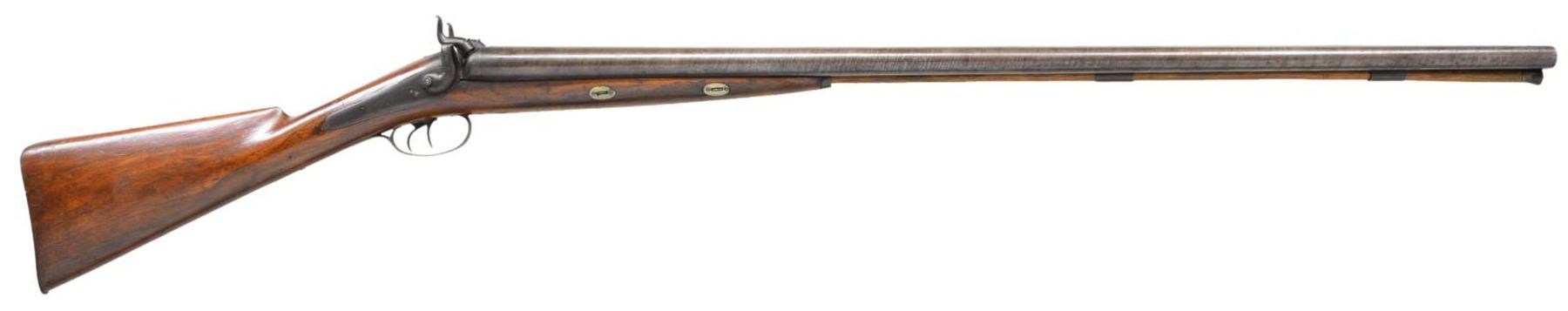 BRITISH SXS PERCUSSION SHOTGUN RETAILED BY H. E.