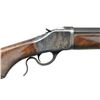 SINGLE SHOT RIFLE. Cal. 40-65. S# 08971NR2B7. Bbl. 30" half octagon heavy weight measuring 15/16" at muzzle with spirit level globe front sight. Matte black finished barrel. Case colored single shot action. Top tang has 2 open screw holes for sight attachment, no sight included. Schnabel tipped forearm and steel capped pistol grip stock of satin finish fancy walnut cut checkering. LOP to checkered steel buttplate: 13 3/4". Weight: 11 lbs., 2.4 oz. Mfg. in Japan 1996-2001. UNATTACHED ACCESSORIES: original box containing hang tag. CONDITION: near excellent. Breechblock and buttplate show small spots of corrosion. Bright near excellent bore. (22-4756/DS). MODERN. $1,200-1,800.