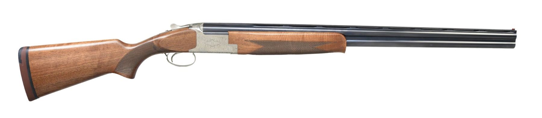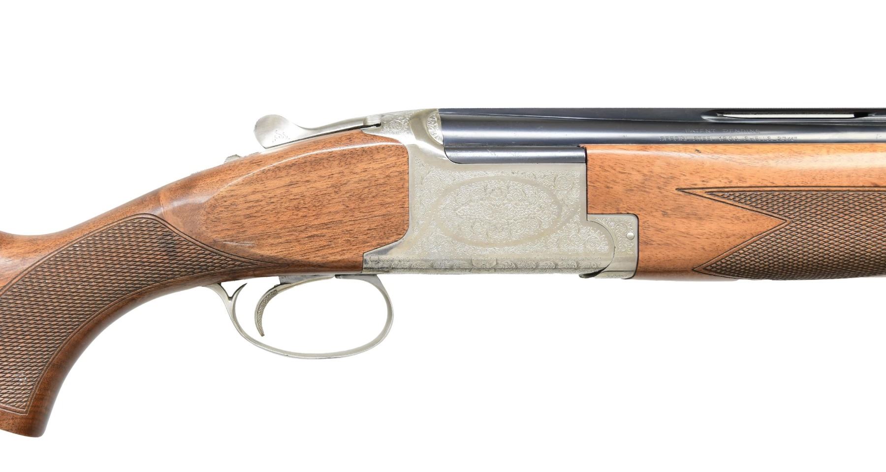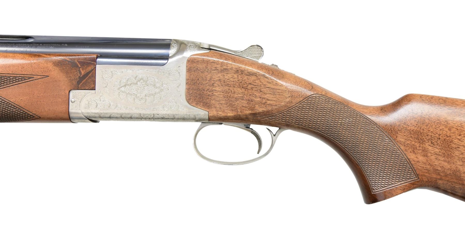 Cal. 12 Ga. 2-3/4". S# L13PY01017. The 28" demi-bloc barrels choked IC & Mod are fitted with Broadway style ventilated rib. Browning markings are on left side of top barrel above FN markings along with 'MADE IN BELGIUM". Coin finished action with single selective trigger is engraved with English style rose and scroll. "Browning" is on bottom of action. Lightly fiddle figured American walnut pistol grip buttstock measures 13-3/4" over brown Decelerator sporting clays pad. Grip is checkered, as is matching schnabled one piece forend with black plastic release button in tip. MEASUREMENTS: STOCK: DAH: 2-7/16". DAC: 1-1/2"+. CAST: slightly off. LOP: 13-3/4". WEIGHT: 7 lb. 1 oz. UNATTACHED ACCESSORIES: gun comes with a black ballistic cloth case marked "SKB" lined in black fuzzy fur. CONDITION: very fine retaining nearly all factory finishes on metal with a few pinpoint areas where finish has lifted on action. There are a few scattered marks in stock finish. Bores are bright and shiny. Mechanically fine. Case is fine. (24-5354/MGM). CURIO MODERN. $1,000-1,400.