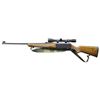 Cal. 7mm Rem Mag. S# 137PP05862. Bbl. 24”. 1988 Mfg. Belgian BAR assembled in Portugal with blued barrel and receiver. Hooded ramp front sight with added Williams rear sight and Tasco 3-9x scope with duplex reticle. Pistol grip buttstock and forearm are checkered with sling swivels holding a camouflage web sling. LOP: 13 3/4" to factory recoil pad. CONDITION: metal retains about 90% original finish with the barrel starting to turn a plum patina and some light scattered spots of pitting on the right side receiver. Stock and forearm retain strong checkering with scattered scratches and marks from use. Scope optics are clear. Bore is very good, bright and strong. (22-5260/CW). MODERN. $600-900.