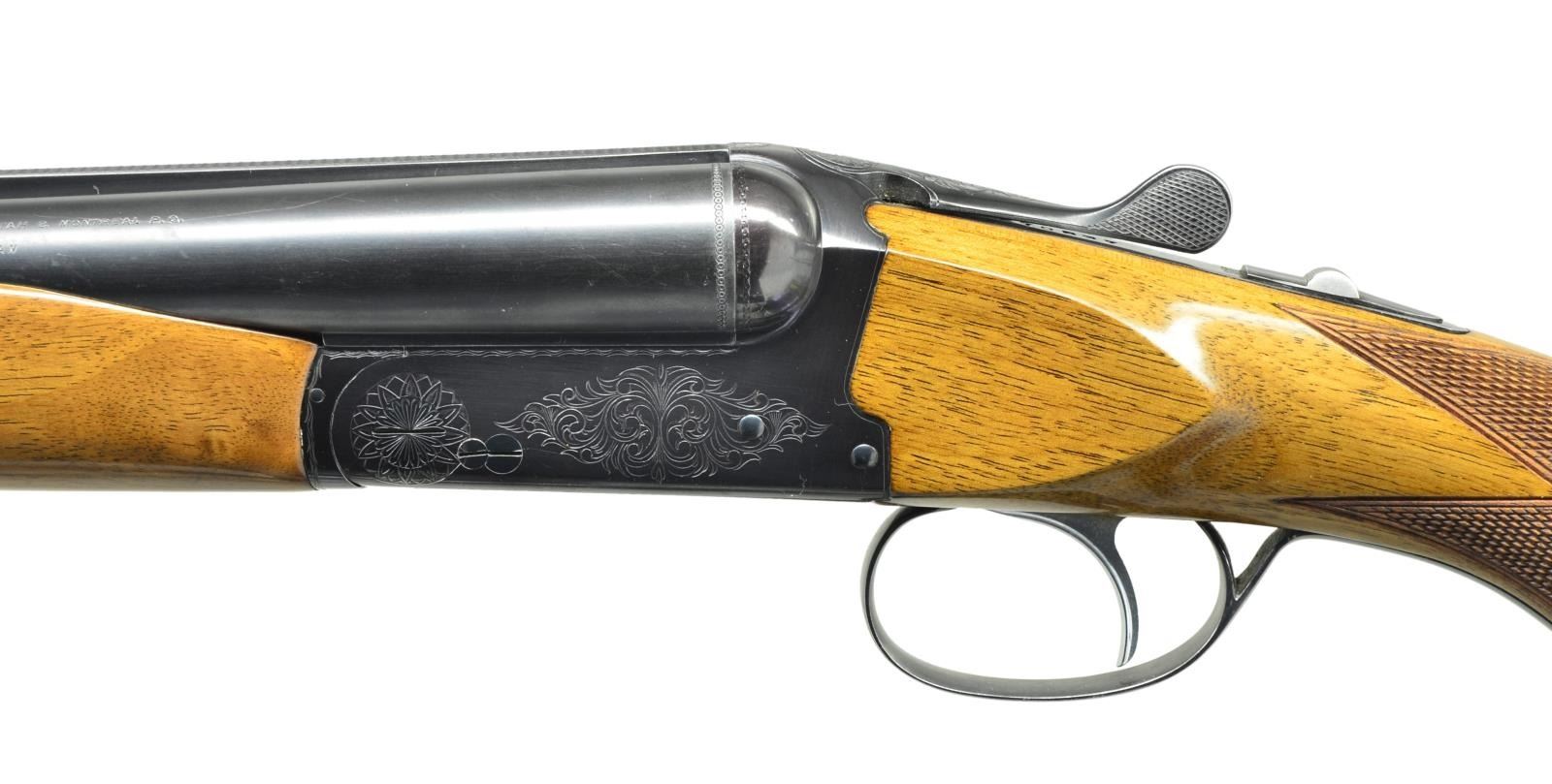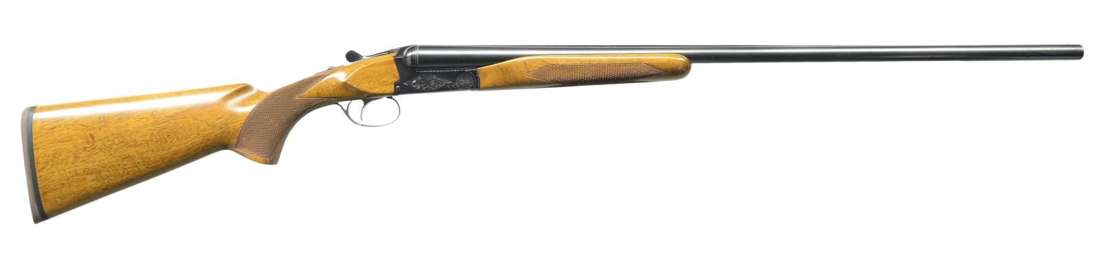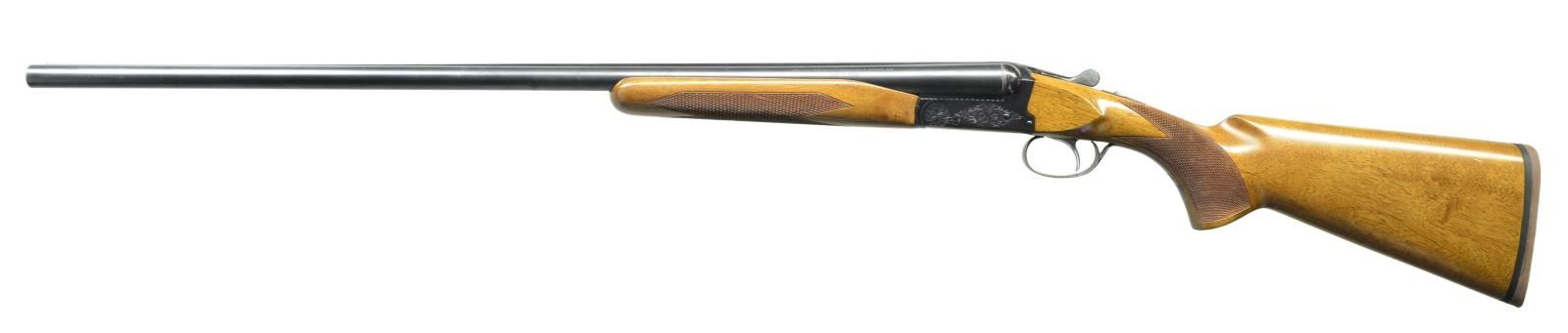 Cal. 20 Ga., 2 3/4" & 3". S# 4270B37. Bbl. 28" w/ fixed Mod & Full chokes. Steel front bead. Blued boxlock action w/ scroll ornamentation. Silver finished nonselective single trigger. Selective ejectors. Beavertail forearm pistol grip walnut stock w/ hand checkering. LOP: altered to 14" over a thin brown decelerator pad. CONDITION: over 97% original blue. Very good original wood finish. Tight action. Bright near excellent bores. (22-918/DS). MODERN. $1,000-1,500.