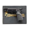 Cal. 9mm Luger. S# 2445PT08061. Bbl. 4 5/8". Round blade front sight. Fixed rear sight. Mfg. 1986. Belgian made pistol marked Browning Arms. Extended ambidextrous safety. Polished blue finish. Original hardwood checkered grips. MAGS: 2-13 rd. UNATTACHED ACCESSORIES: factory box matching numbered to gun w/ styrofoam inserts, cleaning rod, manual & extra Pachmayr grips. CONDITION: all aspects rate very good plus or better w/ some light handling wear on metal. (23-5022/MJC). MODERN. $700-1000.