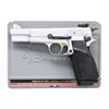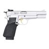 Cal. 9mm Luger. S# 245PY44702. Bbl. 4 5/8". Ramped blade front sight. Adjustable rear sight. Mfg. 1982 in Belgium. Satin nickel finish w/ gold trigger, blued rear sight, slide release, mag release, hammer, & safety. Pachmayr Signature grips. MAGS: 1-13 rd. satin nickel & 1-13 rd. blued w/ KRD baseplate. Total of 2. UNATTACHED ACCESSORIES: factory hardcase for a fixed sight Hi Power w/ a torn end label, manual & paperwork. CONDITION: grips show light handling wear. Right side of frame shows a touch-up spot over some dings around slide stop hole. Metal otherwise shows some light handling marks. Near excellent, bright bore. (23-7156/MJC). MODERN. $650-900.