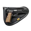 Cal. 9mm Luger. S# 245RN57231. Bbl. 4 3/4" w/ matching number at port. Mfg. 1979 w/ blued finish & adj. sights. Spur hammer, external extractor, mag. safety & border checkered hard wood grips w/ orange backs black marker marked “739”.  MAGS: 1 factory 13 rd. w/ push button base & black plastic follower.  UNATTACHED ACCESSORIES: red lined black Browning zippered pouch w/ matching number label & paperwork.  CONDITION: all aspects near excellent; appearing new & unfired. PROVENANCE: Estate Collection of Kenneth Horn (Grandson of JC Higgins). (22-484/NW). MODERN. $800-1,200.