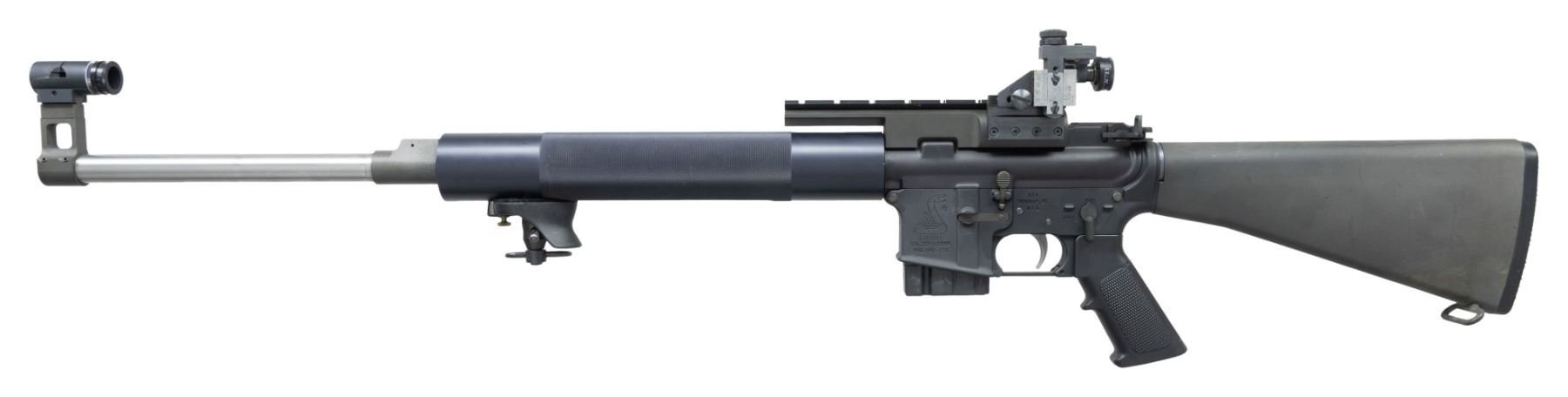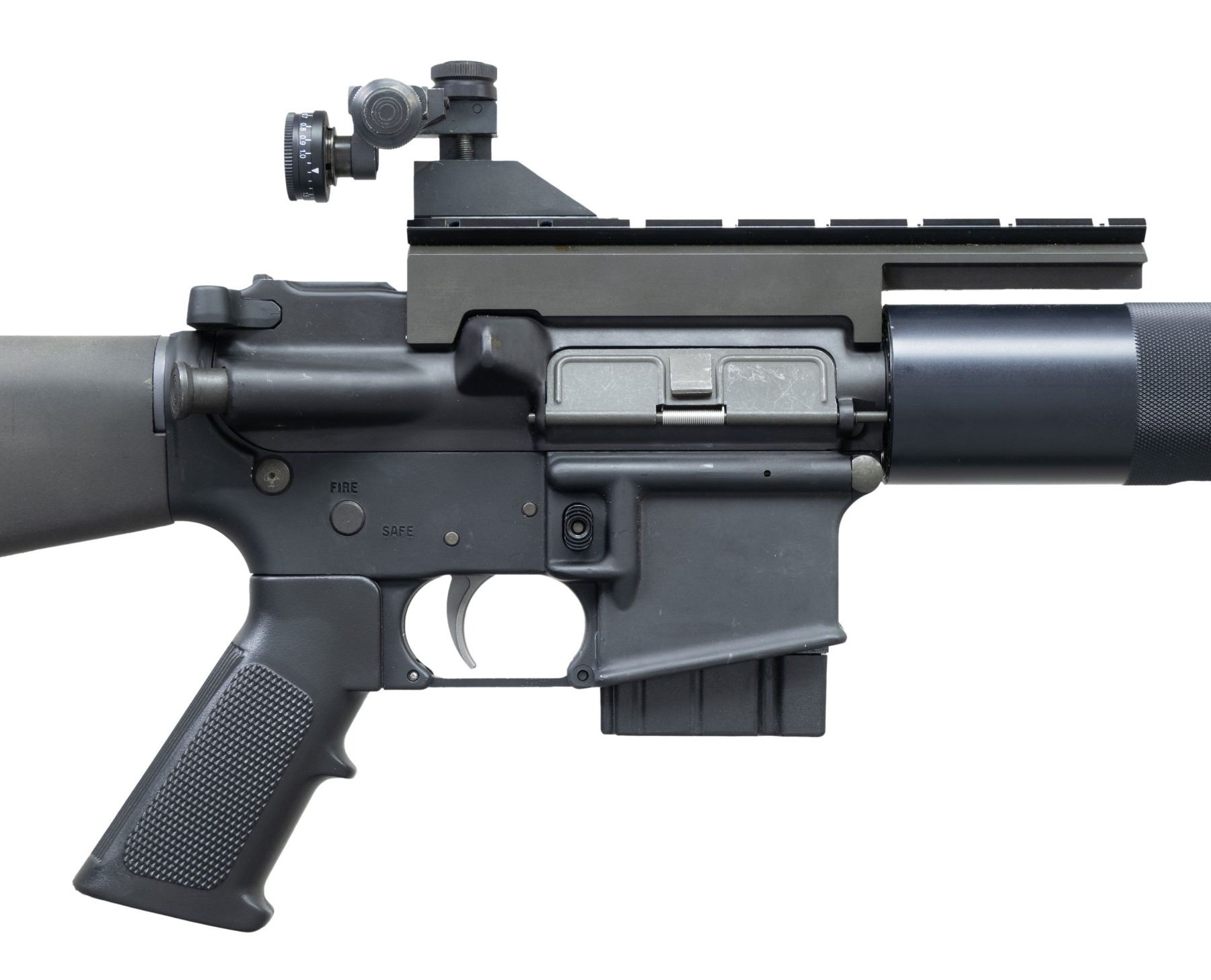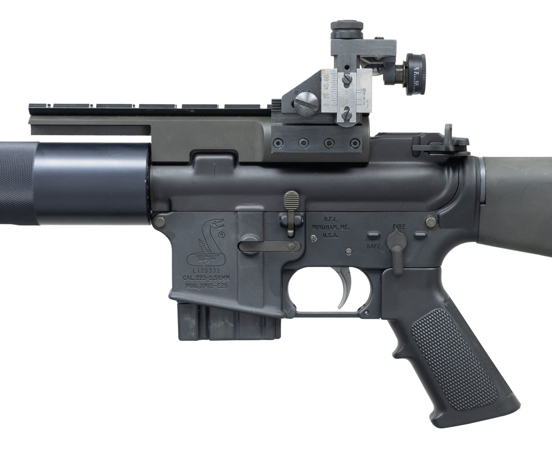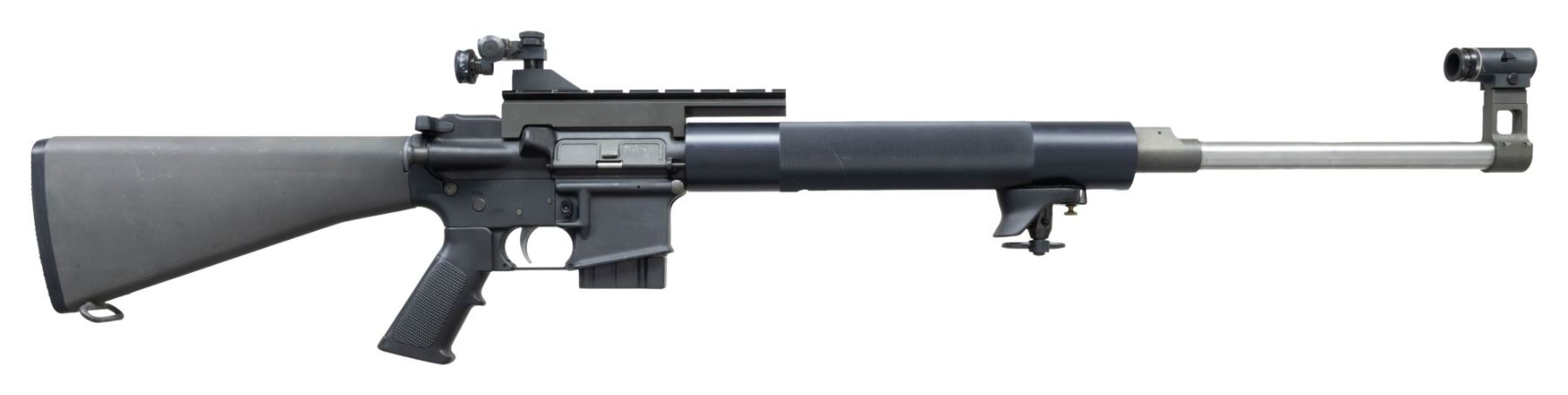Cal. 5.56mm. S# L125331. Bbl. 24" stainless heavy. OK Weber target front sight. RPA Target rear sight. Upper also appears to have had a carry handle that was removed & now has a Weaver style rail for further sight mounting. Rifle appears to be custom assembled target rifle using a Windham, Maine Bushmaster lower. Aftermarket match trigger. Charging handle has extended latch. Upper & lower have different shades of matte finishes. A2 stock & pistol grip. Round free float handguard with removable hand stop. MAGS: 1-5 rd. CONDITION: furniture shows scattered scuffs & handling marks. Metal shows scattered handling marks. Action functions properly when hand cycled. Very good bore with strong rifling. (25-3880/MJC). MODERN. $700-1000.