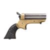 Cal. 22 Short. S# 36311. Bbl. 2 1/2" four-shot cluster. Brass action with a spur trigger. The hammer has a rotating firing pin. Two-piece Gutta-Percha grips. CONDITION: bbls. have faded to gray, showing light pitting. Brass action shows a mild patina. Grips show wear. The right panel is chipped & glued. Dark, lightly pitted bores retain sound rifling. The firing pin does not rotate. PROVENANCE: From the lifelong collection of Jerry Senter. (01-24906/DS). ANTIQUE. $300-400.