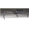 Cal. 22 LR. S# 002584. Bbl. 16". M100 semi-automatic rifle mfg. by Calico. Left side of receiver is marked "CALICO M-100", with the S# and Calico's mfg. information marked on the right. Aluminum components exhibit a black enamel finish, with steel components exhibiting a blue finish. Black polymer grooved pistol grip with ribbed forend. Additional features include a folding buttstock and bipod, as well as Calico's distinctive cylindrical mag. Bipod is missing one of its rubber feet. Receiver is mounted with a Bushnell Banner .22 scope. MAGS: 1 100-rd. CONDITION: very good, with metal components retaining the majority of their original factory finishes, exhibiting some scattered handling marks overall. Mirror bore, exhibiting strong rifling throughout. Polymer furniture shows some superficial marks from handling and storage, but otherwise remains sturdy and serviceable. Scope retains a clear optic. (23-6369/MLW). MODERN. $300-500.