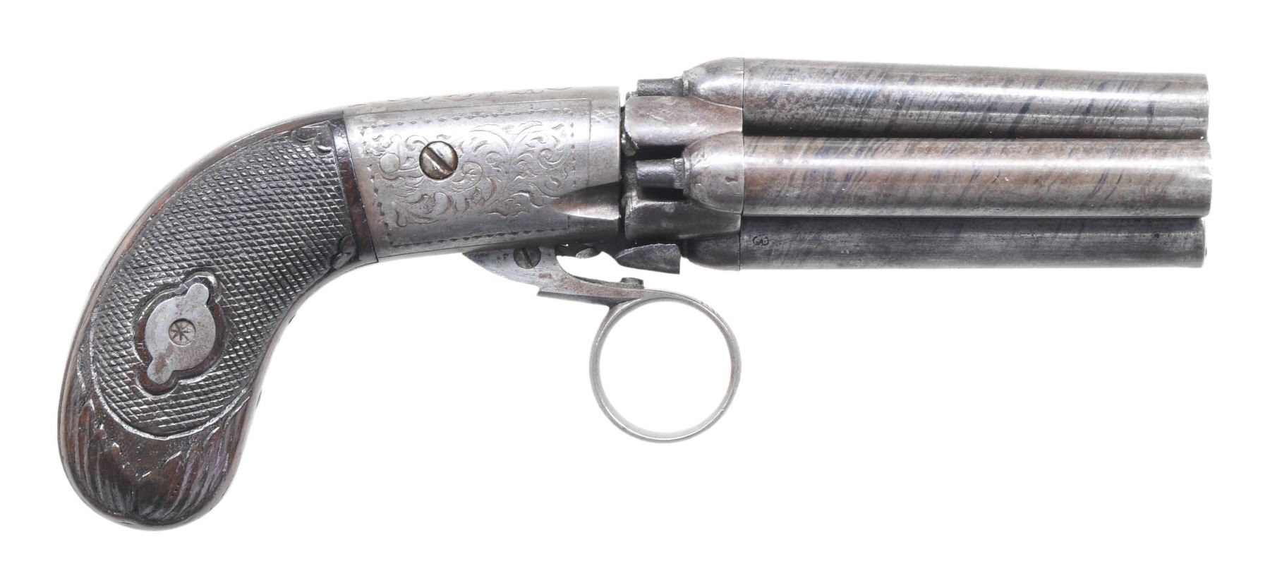 CASED LIEGE 4-BARREL PERCUSSION PEPPERBOX