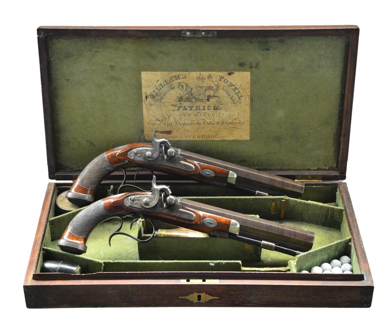 CASED PAIR OF WILLIAMS & POWELL PERCUSSION PISTOLS