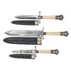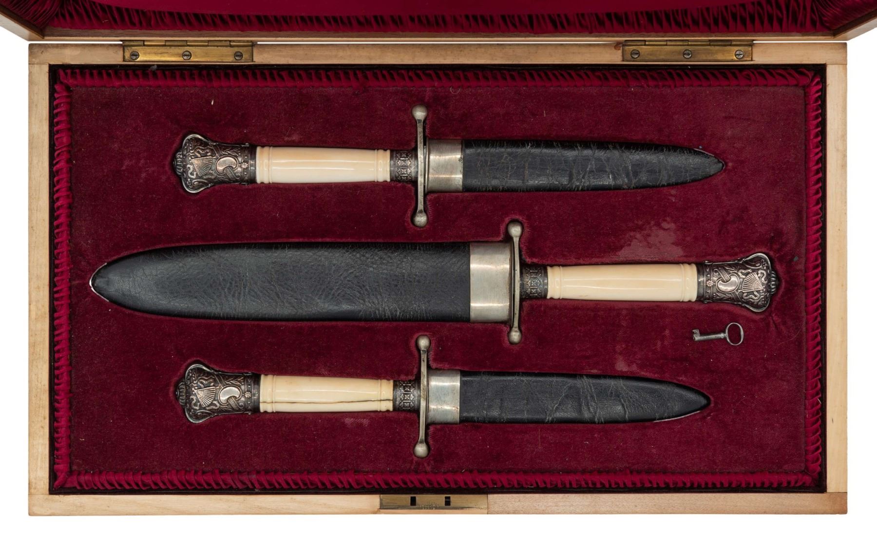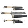 CASED SET OF THREE REPRODUCTION BOWIE KNIVES.
