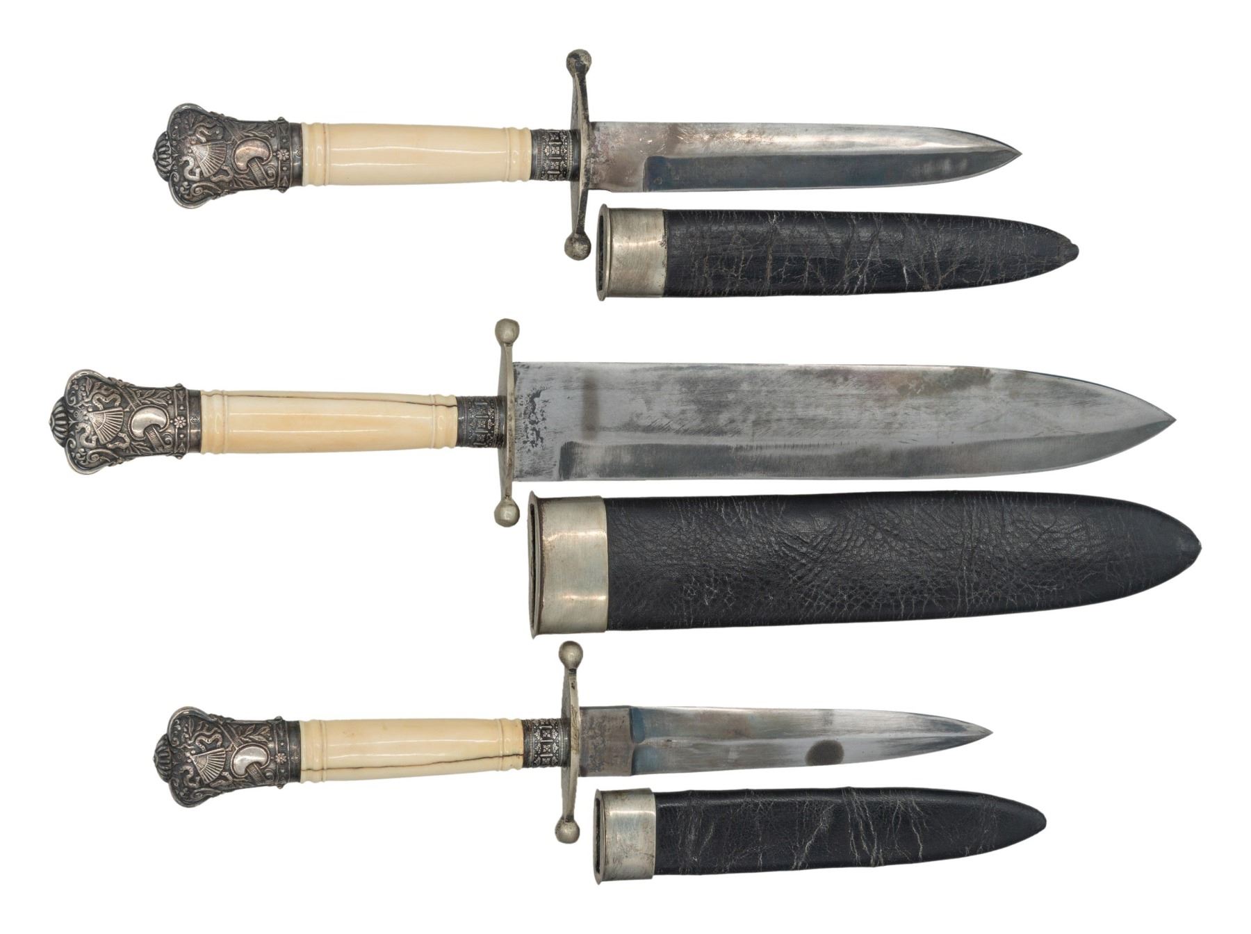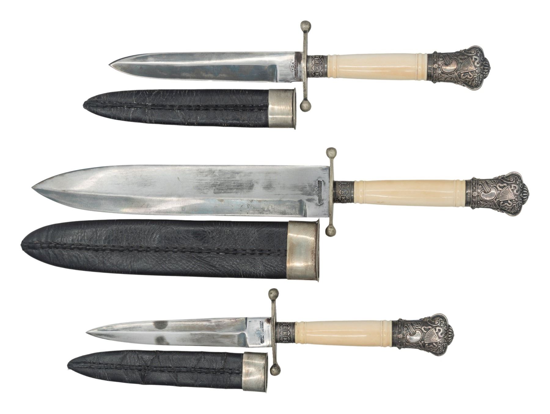 Modern fakes marked "HARRISON BROS & HOWSON / CUTLERS TO HER MAJESTY". CONDITION: very good overall, cracked faux ivory handles. (02-25215/JS). NON-GUN. $600-800.