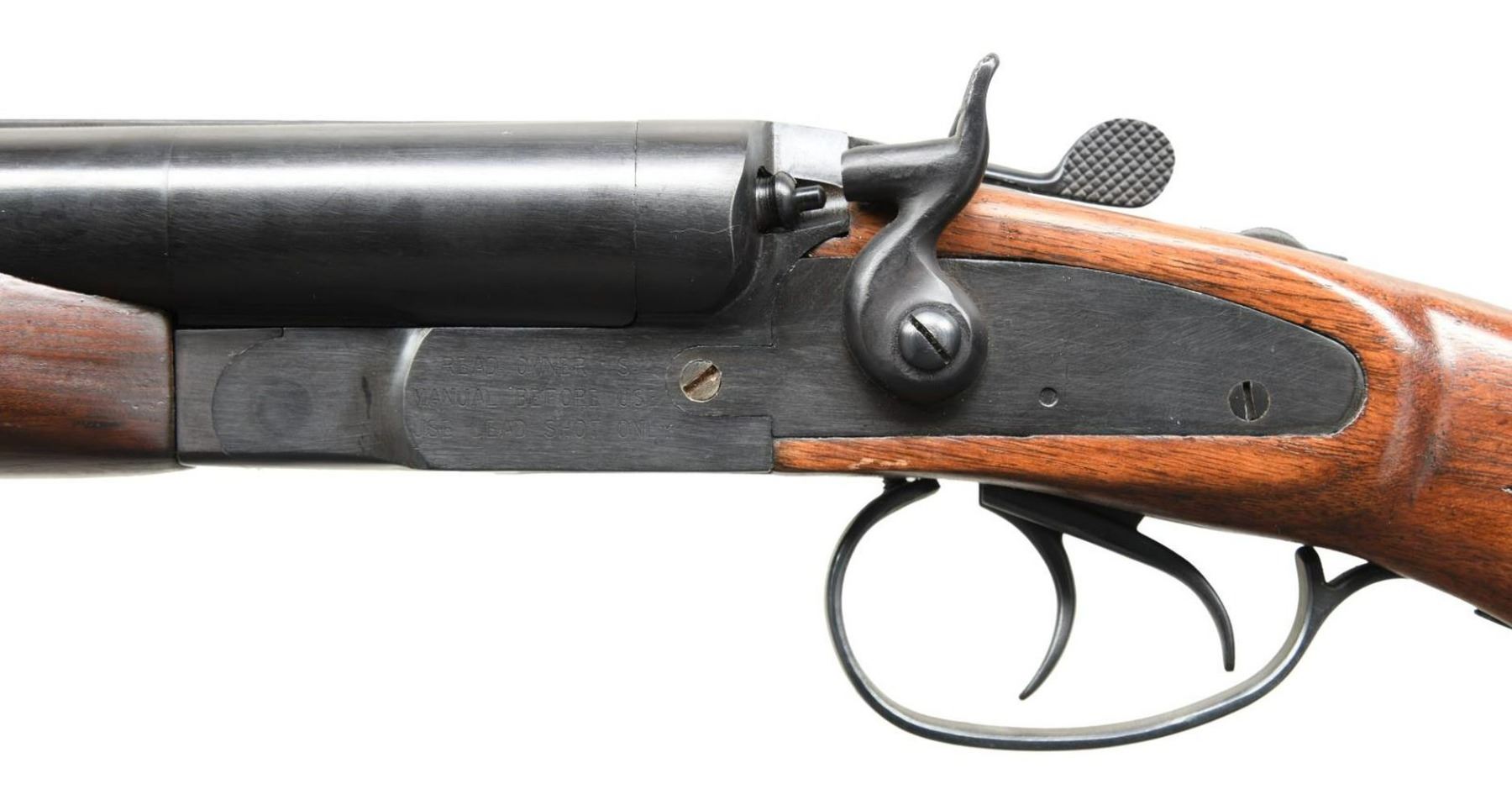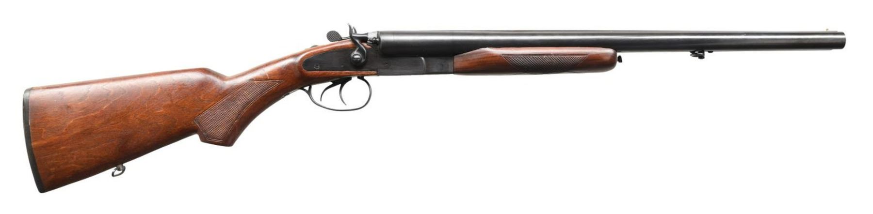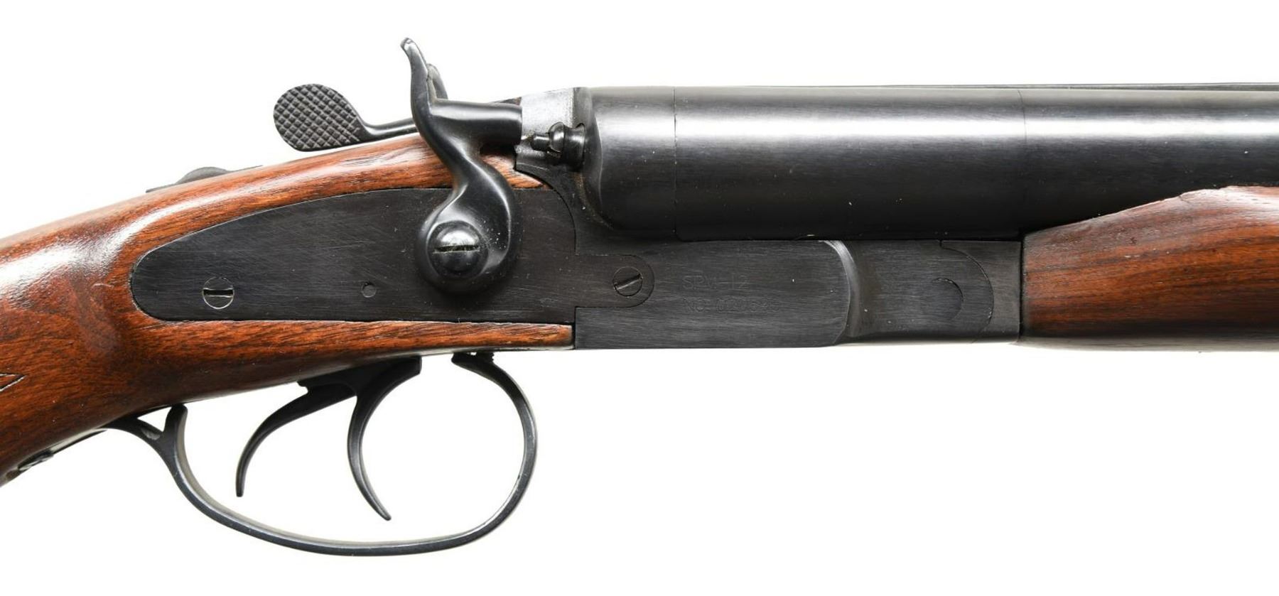 Cal. 12 GA, 3". S# 020595. Bbl 20 1/8". SPM-12 SxS shotgun mfg. by Jing An in China and imported by Century Arms International. Top of bbl. exhibits the cal. designation above mfg. and importer information, with the model and S# on the right side of the receiver. Blued finish with checkered wood buttstock and forend. Solid grooved rib with brass bead front sight. CONDITION: very good overall, with metal components retaining the vast majority of their original factory blue finish, exhibiting a few scattered marks from handling and storage. Mirror bores. Wood furniture shows a few scattered marks from handling and storage, but is otherwise sturdy and serviceable. (23-4996/MLW). MODERN. $200-300.