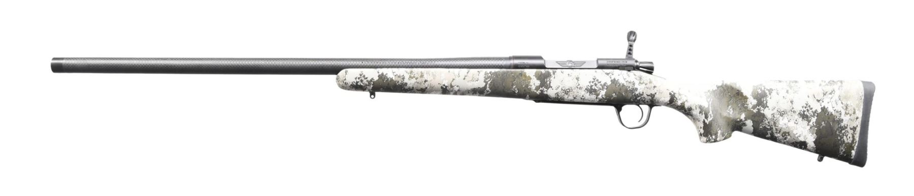Cal. 300 PRC. S# CV57122. Bbl. 26", threaded. Rifle has no sights, but receiver is factory drilled and tapped for scope mounting. Bbl. has a gray carbon fiber finish. Receiver and bottom metal have matte black finish. Veil camo synthetic stock with bottom-mounted sling studs and factory recoil pad. LOP: 13 3/8". UNATTACHED ACCESSORIES: matching-numbered factory box with manual, bolt, paperwork, and detachable muzzle brake. CONDITION: all aspects are near excellent. (24-3239/MJC). MODERN. $1,000-1,500.