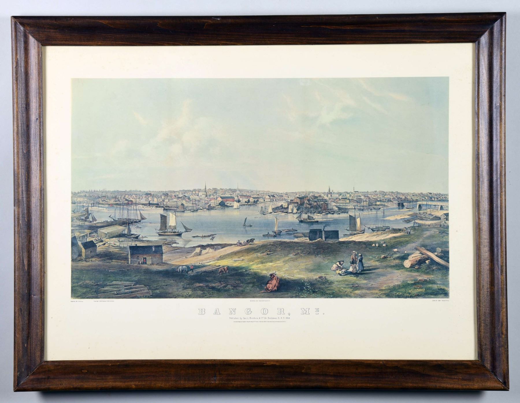 "Painted by J.W. Hill, litho by Charles Parsons, printed by Endicott & Co., NY, published by Smith Brothers & Co., 59 Beekman St., N.Y. 1854; copyright 1969 Bangor Public Library". Housed in a molded wood frame under glass. SIZE: sheet size is 22" x 30", image is 15" x 26". CONDITION: good overall. PROVENANCE: Private Maine Estate. (05-1049/TG). $400-600.