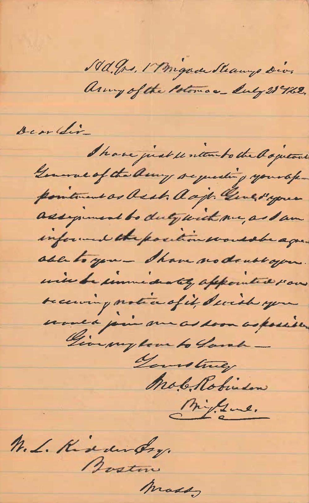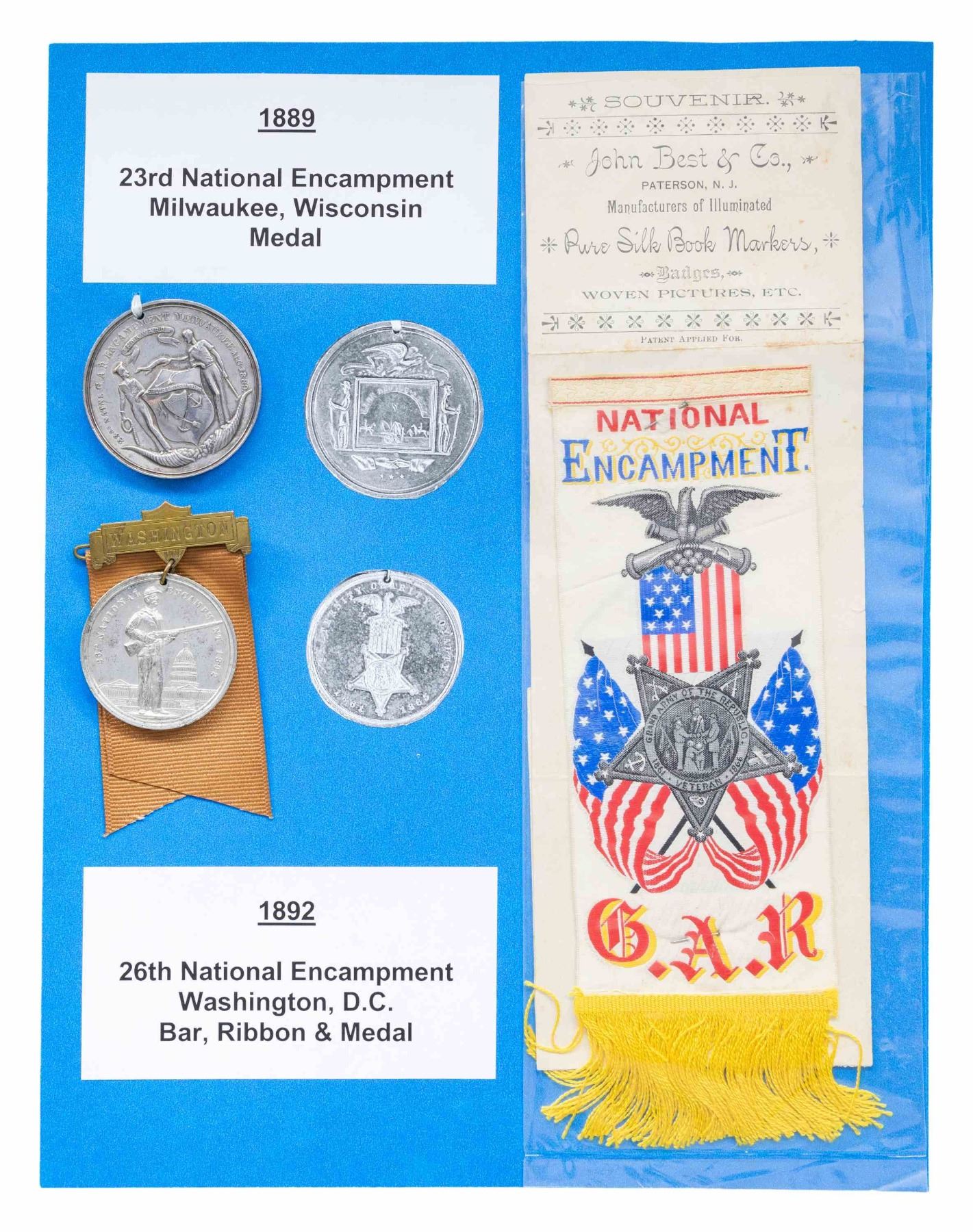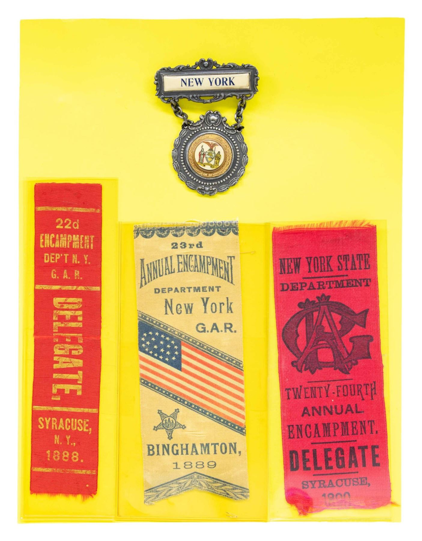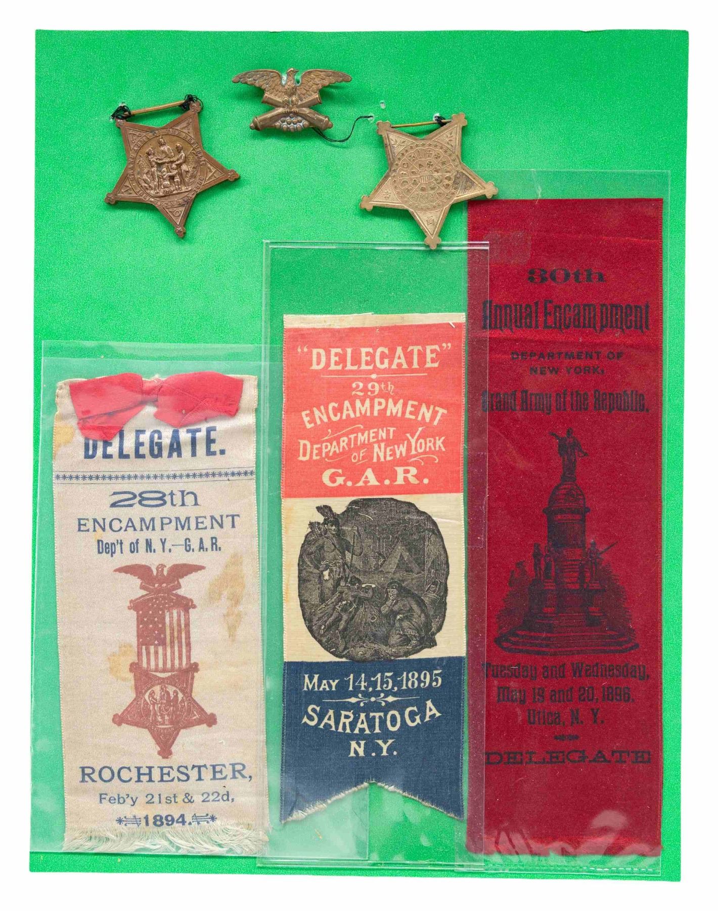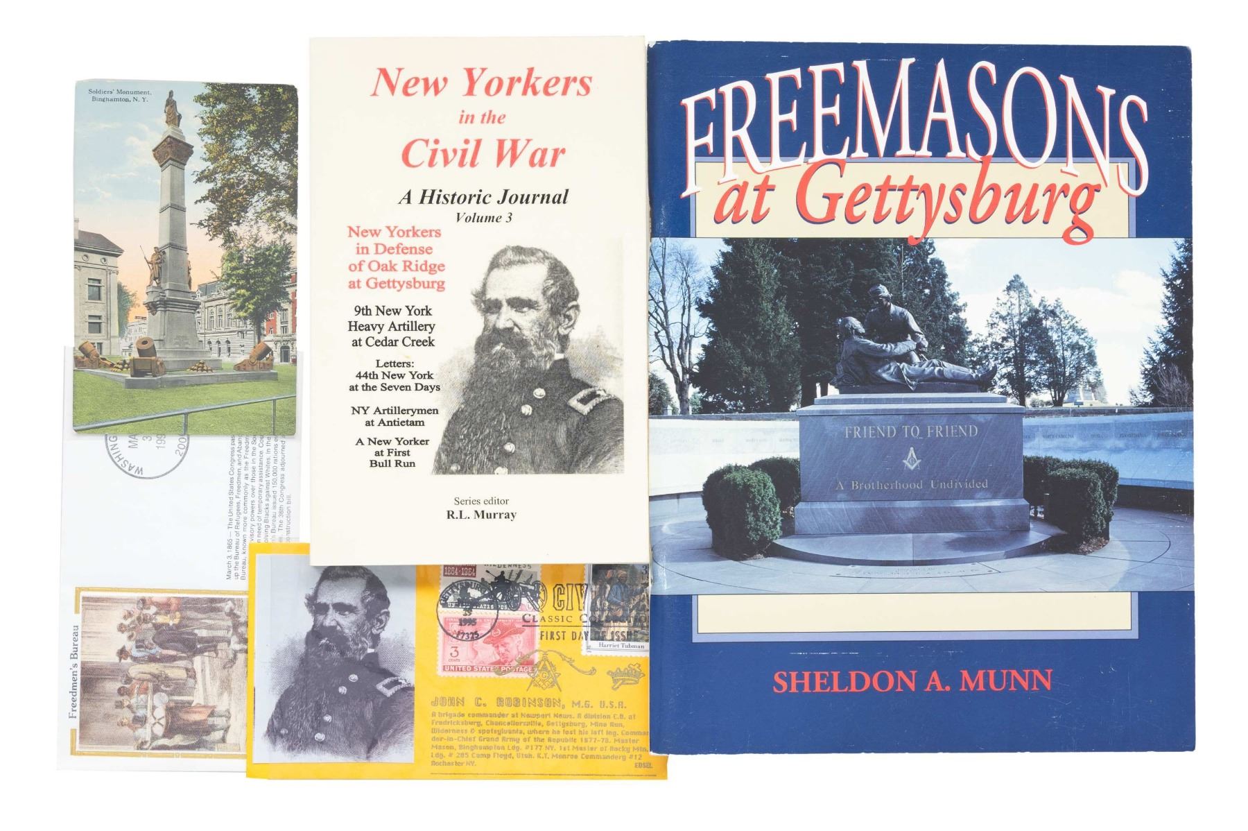 REVOLVER & MASSIVE MEMORABILIA ARCHIVE, MEDAL OF HONOR RECIPIENT. Cal. 36. S# 10225. General John Cleveland Robinson (1817-1897) had incredible military career after leaving West Point in 1838, through Seminole Wars, Mexican War, Civil War being awarded congressional medal of honor and losing his leg in 1864, headed Freedmen's Bureau in North Carolina, commander of Department of the South, retired from army May 6, 1869 with rank of Major General, later commander-in-chief of Grand Army of Republic, and Lieutenant Governor of New York. There is a full length bronze statue of Robinson on Gettysburg battlefield at intersection of Robinson & Doubleday Avenues. This archive has large file of provenance which accompanies lot. Everything in archive is very well preserved and very good condition. Revolver is standard configuration 3rd model Colt 1851 navy revolver made in 1852 when Robinson was stationed at Fort Gibson, Indian Territory [Oklahoma]. Revolver is in fine condition retaining about 20% blue finish, muted case colors, fine crisp cylinder scene and all 6 crisp safety pins, grip frame retains almost all its original silver plate, and grips retain most of their original factory varnish, mechanics functional, crisp bright rifled bore with couple patches of light pitting. Original green velvet lined Colt mahogany casing is matching very good to fine condition, stained and soiled where revolver rubbed, "COLT'S PATENT" eagle flask added has denting on back side, correct style 2-cavity "COLT'S PATENT" mold marked "36B" for 36 caliber belt is added and fair condition, empty ELEY cap tin with scarce embossed foil label. Case is missing inset lock face escutcheon but has functional key in case. "Gen'l John C. Robinson" written on bottom of case. The massive archive has over 100 individual items, mostly collected by Carl Saddlemire starting about 1950 after he purchased gun from decedents of Gen. Robinson near where he lived. His son writes that his dad and family visited Gettysburg in 1953 and he took photo of Robinson statue with his Brownie camera which is in album. Carl is shown in newspaper articles as early as 1952 showing his gun collection. Carl & Richard continued to collect pertinent Robinson related items which are part of archive. There are several Robinson letters from 1839 at West Point, 1850 letter to Capt. Robinson at Fort Gibson, IT. Good 1861 letter written as Colonel 1st Michigan & color lithograph of Camp Union, 1st Mich, Col. John C. Robinson. There is a General US Grant autograph note signed directing Robinson to accompany him at Ft. Monroe in 1864. There are several signed orders by Brigadier Gen. Robinson and many reunion badges & ribbons and related letters. UNATTACHED ACCESSORIES: large binder contains provenance and history of archive, most all memorabilia is on binder sheets with notes as to identification, handwritten 9-page 1890 "Military Record of Gen. Robinson". CONDITION: very good to fine overall as noted in description, interested bidders should view large archive in person. PROVENANCE: General John C. Robinson (1817-1897) family descent to Carl Lewis Saddlemire (1914-1997) to his son Richard D. Saddlemire who added pertinent items to archive. (01-28136/JS). ANTIQUE. $10,000-20,000.