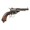 PINFIRE REVOLVER. Cal. 12mm. S# 31962. This was among the most popular cartridge revolvers in the world at the time of the Civil War, several thousand were imported during the Civil War to both Union and Confederacy. This example has suspect marking on top barrel flat "CSA 9 VA". Parts to these revolvers are excavated in Confederate cavalry camps and skirmish showing they did see considerable service. Standard configuration, patent cartouche on left side of frame. Chris Curtis collection, author "The Pinfire Book". CONDITION: good to very good overall, smooth plum/brown iron patina, sharp edges, good markings, crack repair to each grip panel, mechanically functional, good rifled bore. (01-22358/JS). ANTIQUE. $800-1,200.