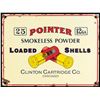 12" X 9" reprinted ad. of Clinton Cartridge Co. Pointer 12 Ga. shot shells. CONDITION: sign mostly intact & shows good colors with oxidation & marks. PROVENANCE: Norman Olliff Estate. (02-25682/MD). NON-GUN. $20-30.