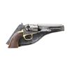 Cal. 36. S# 34105. Bbl. 41/2", round with New York address and bead sight. Five-shot fluted, rebated cyl. Brass grip straps. One-piece walnut grip. Original finish was blue and case-colored with silver-finished grip straps. Mfg. 1866. UNATTACHED ACCESSORIES: unmarked leather flap holster, in fair condition. CONDITION: metal finish has faded to gray, showing some cleaning with scattered, light pitting and small marks. Grip straps are cleaned. Grips have a peeling original finish with heavy marks, dents, and small chips. Functioning action. Cyl. shows some looseness. The lightly pitted bore retains sound rifling. (01-25777/DS). ANTIQUE. $800-1,200.
