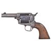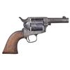 REVOLVER. Cal. 45 Colt. S# 75647. Referred to by Colt as Single Action without ejector assemblies. These desirable revolvers are known to collectors as "Sheriff's Models" or "Storekeepers Models".  Bbl. 3 1/2" Round with blade front sight. 6 Shot fluted cyl. This is s second style black powder Sherifs's Model frame. Page 69 of "A Study Of The Colt Single Action Army Revolver" by Graham, Kopec & Moore states "It is believed that this type of frame was manufactured by grinding or milling away the ejector house receptacle of regular SAA frames". Page 67 of the above mentioned book states "Ejectorless Single Actions having Serial number below 77,000 have been reported" & "No production or shipping records for these revolvers nor any of the others, have been discovered; so we are unable to relate facts regarding authenticity of Sheriff's Models below the 77,000 SNR". Blue & case colored finish. 1 Piece walnut grips. Mfg. 1882. CONDITION: barrel retains 70% dull lightly faded blue. Cyl. has fading blue showing scattered light pitting & corrosion. Frame retains 70% light & fading case colors that appear to be original Grip straps have faded to brown / gray patina. Heavily sanded & refinished grips are undersize showing dents & handling marks with chips at toe. Sound action. Bore retains strong rifling. (01-21619/DS). ANTIQUE. $8,000-12,000.