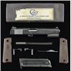 This conversion unit is complete including an extra slide stop & set of Coltrock checkered grips. Unit is contained in box w/ label indicating floating chamber. CONDITION: slide finish very good overall w/ scattered spots of light pitting & area of considerable pitting & patina behind ejection port on right side. Box in good overall condition w/ 2 detached side flaps & tear front one side edge on lid. Label on lid missing portion w/ pencil marking in top left side. Near excellent bore. (02-17080/MD). $400-600.