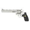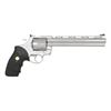 Cal. 44 Mag. S# MM97465. Bbl. 8" VR full lug having raised rib (factory ported) w/ red insert blued blade. Mfg. 1997 (1992-1993, 1995-1996 & 2002-2003) per factory website. Bright polished stainless w/ white outline Accro rear sight & Colt checkered rubber Gripper grips by Pachmayr having gold factory medallions. Top of frame factory drilled & tapped for scope mounting. Wide serrated trigger & grooved tear drop shaped hammer. UNATTACHED ACCESSORIES: factory blue plastic case w/ packaging. Light walnut checkered aftermarket grips having square butt profile & Colt medallions; near excellent. CONDITION: very faint cyl. turn line from functioning; all other aspects near excellent, appearing new & unfired. (23-813/NW). MODERN. $2,500-3,500.