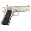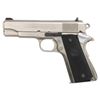 Cal. 9mm. S# 70SC3643. Bbl. 4 1/4". 3 dot sights. Satin nickel finish. 2 piece checkered hard rubber rampant colt grips. MAGS: 1 detachable 8 rd. UNATTACHED ACCESSORIES: Cabela's nylon shooter's bag. CONDITION: 70% satin nickel finish shows carry wear w/ spots of freckling. Very good grips. Very good bore. (23-7175/DS). MODERN. $700-1,000.