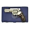 Cal. 357 Mag. S# EC4163. Bbl. 4" with solid rib and full lug. Red ramp front sight with white outline square notch adjustable rear sight. Fluted 6 shot cylinder. Stainless steel construction. 2 Piece finger groove combat grips of red, black and gray laminate. Mfg. 1993. UNATTACHED ACCESSORIES: blue box with instruction manual. CONDITION: 97% finish showing slight edge wear and cylinder drag line. Very good grips. Bright near excellent bore. (22-3999/DS). MODERN. $1,750-2,500.