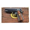 Cal. 45ACP S#CLW022746 Bbl. 4.25 Serrated slide with serrated ramp, white painted front sight w/ square notch white outline adj. rear sight. Blue finish. Combat style hammer. Trigger has added wide shoe. 2 Piece wood grips w/ gold Colt medallions. Mfg. 1975. Extended beavertail grip safety. MAGS. 1 Colt 7rd. UNATTACHED ACCESSORIES. wood grain box w/ gold label w/ corrected S# to match pistol. Original beavertail grip safety. CONDITION: over 98% blue showing sm. scratches. Wood shows some finish wear. Bright bore w/ strong rifling. Fire control mechanism appears to function correctly when cycled by hand. (22-1801 /JZ) MODERN $1000-1500