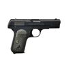Cal. 380 ACP. S# 77485. Bbl. 3 3/4". Fixed sights and hard rubber grips with both “COLT” and Rampant logo. MAGS: 1-7 rd. factory. CONDITION: metal surfaces nicely refinished with about 98% coverage. Grips retain solid but flattened checkering. Bore is fair to near good, visible but worn rifling w/ light pitting in the grooves. (22-3994/CW). CURIO. $300-500.