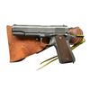 Cal. 45 ACP. S# 784494. Bbl. 5". Mfg. 1942 with matching S# under firing pin stop and proper boxed “WB” inspector initials left side frame. Blued barrel is marked “COLT 45 AUTO”. Fixed front and rear sights with wide spur hammer and stamped & checkered trigger. Arched checkered mainspring housing. Coltwood full checkered grips with reinforcing rings. MAGS: NONE. UNATTACHED ACCESSORIES: Boyt 42 dated Model 1916 flap holster with tie down thong and flaking finish & verdigris. CONDITION: metal is parkerized and retains about 85% evenly thinning finish with scattered fine to light scratches and verdigris from holster storage. Grips are solid with strong checkering. Bore is very good, bright and strongly rifled with some patches of leading or roughness. (22-2855/CW). CURIO. $1,000-1,400.