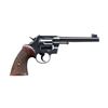 DA REVOLVER. Please note as of 5/6/25 this item description has been updated. Please revisit this description and contact us with any questions. Cal. 38 Special. S# 451948. Bbl. 6" heavyweight. Adj. front & rear sights. Six shot fluted cyl. Blue finish. 2 piece checkered walnut aftermarket target grips. CONDITION: over 90% blue showing edge & carry wear w/ cyl. drag line. Grips show light wear & marks. Sound mechanics. Very good bright bore. (24-6540/DS). CURIO. $800-1,200.