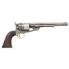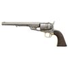 Cal. 44CF. S# 54289. This revolver has added fake "U.S." and assembly numbers to pass off as scarce US martial alteration, mixed S#s 124289 on trigger guard. 7 7/8" barrel, cut from 8". CONDITION: good as altered and restored, address and barrel S# are re-engraved, S# on iron backstrap is re-engraved also, grips well worn, no finish other than nickel on cylinder, mechanics functional, good shiny rifled bore. (01-28188/JS). ANTIQUE. $1,000-1,500.