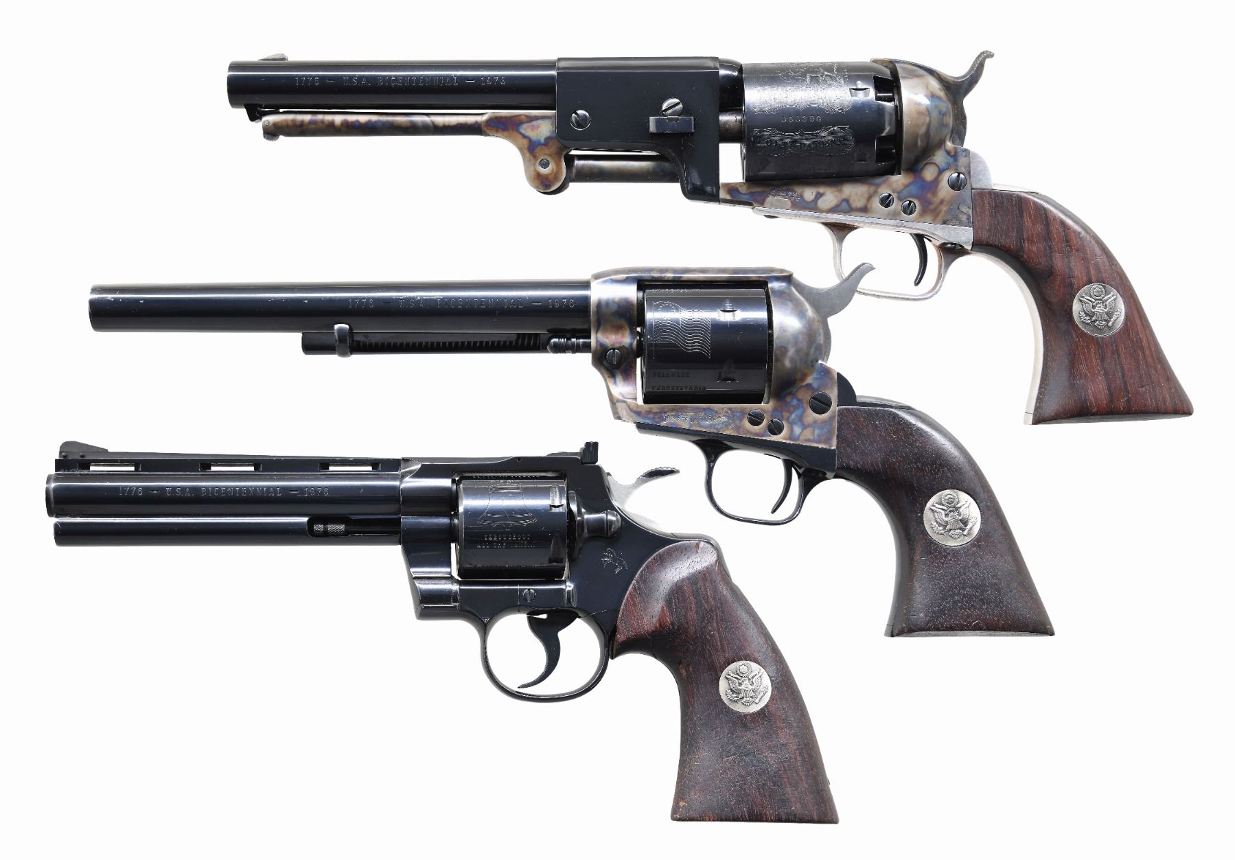 COLT US BICENTENNIAL THREE GUN CASED SET.