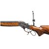 RIFLE. Cal. 45-70. S# 1051. Bbl. 32" octagon (12") to slightly tapered (1.110" to 1.008") round (20") with Lyman #17 globe front sight; Soule style (unknown maker) long range rear sight (very similar to MVA #100) on tang. Octagon section is drilled and tapped (plug screws present) at proper 7.2" spacing for target blocks. Bottom of barrel is marked "Badger" along with "1-18" (twist rate), "5R" (type of rifling) and "5-16-05" (date). Improved version of Stevens Model 44-1/2 by Paul Shuttleworth (1929-2022) using investment cast 8620 steel and modern CAD machining methods starting in 1986. Walls of action are slightly thicker than the Stevens for more strength. Fitted with double set triggers plus ball and spur lever without wood inserts. Besides the quality appearance and smoothness of its action, the hammer has lightening machining on its sides for reduced lock time. Action and lever are superbly case colored and very vivid. Satin blued barrel with polished in the white muzzle to show grease streaks. Finely fitted, gloss finished, uncheckered stock set with slight schnable on forend plus pistol grip buttstock having straight comb, S shaped bottom of pistol grip, raised RH cheekpiece and Stevens marked checkered black plastic buttplate; all with great figure in the wood. Channel of forend has action serial number and "4P". A wonderful classic in a very good caliber that is sanctioned for shooting NRA Silhouette matches. CONDITION: the finish of the stock set has some very slight spots of checking that will very likely come back to life with extremely fine wet sanding and additional hand rubbed finish. Repaired hairline crack on forend from rear screw to action. Metal finish and bore are near excellent. (25-5612/NW). MODERN. $1,750-2,500.