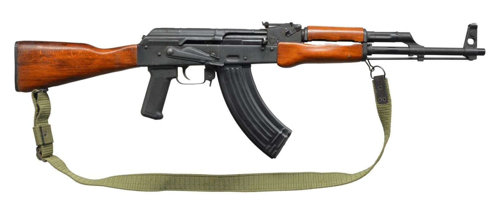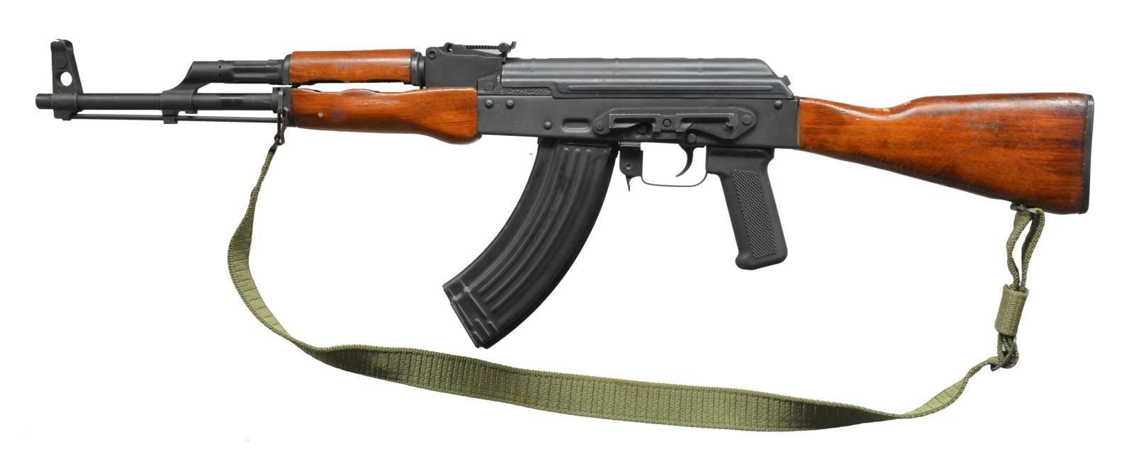 Cal. 7.62x39. S# S1-50584-2001. Bbl. 16 1/2". Romanian AK variant imported by Century International. Stamped receiver. No threads or bayonet lug. Traditional protected post front sight & rear notch sight, variable to 1000m. Left side scope mount on receiver. Reddish brown wood furniture & trapdoor buttstock w/ checkered plastic pistol grip. Green canvas sling. On board cleaning rod. MAGS: 1-30 rd. metal. CONDITION: exposed metal surfaces retain complete finish coverage, light patina on top cover & receiver, furniture free of any major defects w/ a few light impressions at 12 o’clock position on shoulder stock, shiny bore w/ strong rifling, fire control mechanism appears to function correctly when cycled by hand. (21-151/JZ). MODERN. $300-500.