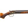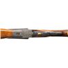 Cal. 20ga, lengthened to 2 3/4" with lengthen forcing cones. S# FWS 11194. Bbls shortened to 26" of Armor steel. White front and mid beads. This highly engraved featherweight sidelock gun was originally a field grade. Full coverage engraving features deep relief oak leaf carving on the frame. Lockplates have scenes featuring gold inlaid dogs with oak leaf borders. Trigger guard bow has a gold inlaid pheasant. Leaf carved top lever has a gold inlaid flying partridge. Double triggers, cock levers, safety switch, action pins and forearm parts are gold plated. Floor plate is engraved with the name "Jim Stuart". Trim beavertail forearm and pistol grip stock in fancy walnut having drop points, carved yellow plastic grip cap, and ornate borderless hand checkering. LOP: 14 1/4" over a black ventilated White Line pad and 3/4" of varying colored spacers. DAC: 1 1/2". DAH: 2 3/4". Stock has a slight cast off. Bore Diameter: (R): .613. (L): .612. Choke Constriction (R): .002 (L): .002. Minimum Wall Thickness: (R): .036. (L): .038. WEIGHT: 6lb, 10.2oz. CONDITION: bbls retain over 95% reblued finish. Action has a very good dark gray finish. Wood has a very good gloss finish showing a few light marks. Action is tight and sound with top lever sitting nicely top right of center. Bright bores. (25-4302/DS). CURIO. $2,000-3,000.