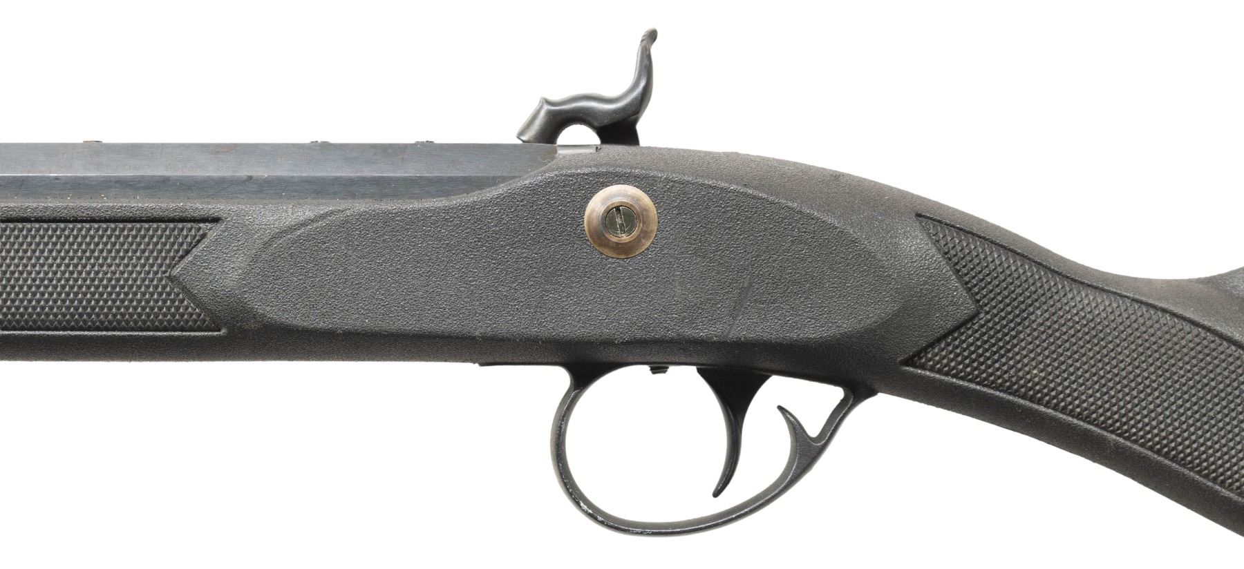 Cal. 50. S# 61-13-003173-96. Bbl. 26" oct. Bead front sight. V-notch rear sight. Bbl. has four holes for sight mounting. Blued finish. Black synthetic pistol grip stock with bottom mounted but vacant sling stud holes. Ramrod present. CONDITION: stock shows scattered scuffs & handling marks. Metal retains 95% original blue with scattered edge wear, light oxidation & handling marks. Action functions properly when hand cycled. Very good plus bore with strong rifling. (01-28178/MJC). ANTIQUE. $150-250.