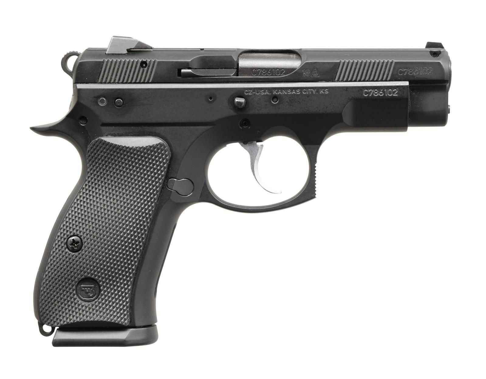 Cal. 9mm Luger. S# C786102. Bbl. 3 1/2". Three dot sights. Compact lightweight CZ 75 pistol w/ decocker. Matte black finish. Checkered rubber grips w/ CZ logo. MAGS: 1-15 rd. factory. UNATTACHED ACCESSORIES: w/box. CONDITION: all aspects near excellent. PROVENANCE: The Collection of Gun Sport Ltd owned by Jon R. Thomas. (23-4430/MJC). MODERN. $300-500.