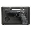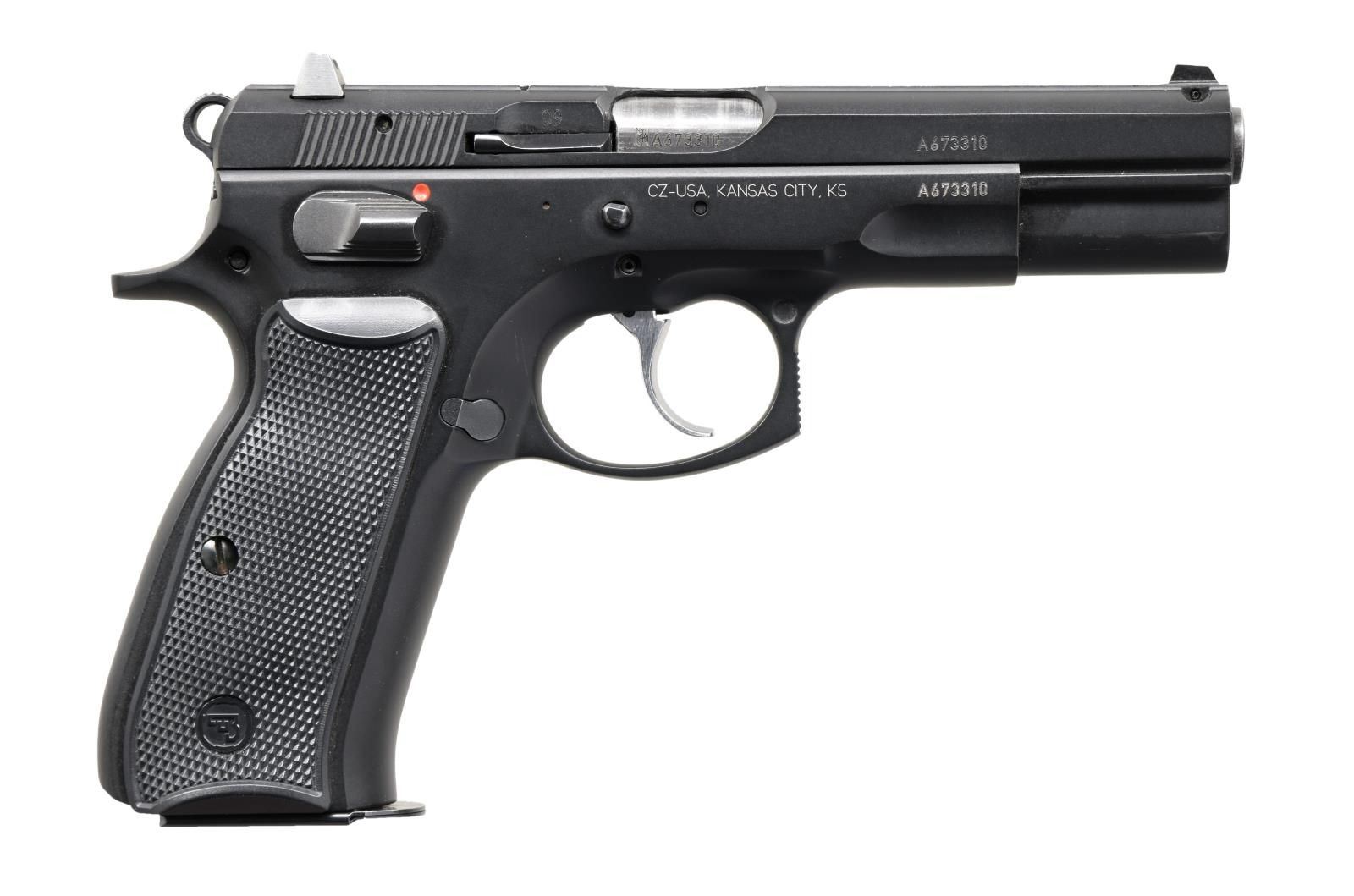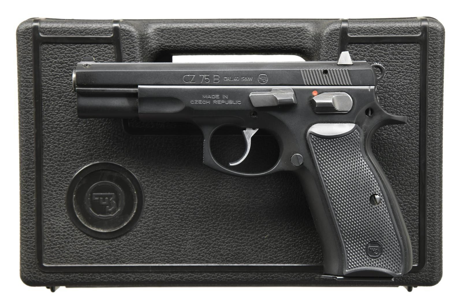Cal. 40 S&W. S# A673310. Bbl. 4 1/2". Three dot sights. Manual safety. All matching numbers. Matte black finish. Black checkered grips w/ CZ logo. MAGS: 2-10 rd. UNATTACHED ACCESSORIES: unnumbered factory hardcase w/ foam inserts, bore brush, cleaning rod, manual & paperwork. CONDITION: all aspects very good plus or better w/ some light handling wear. (23-4988/MJC). MODERN. $400-600.