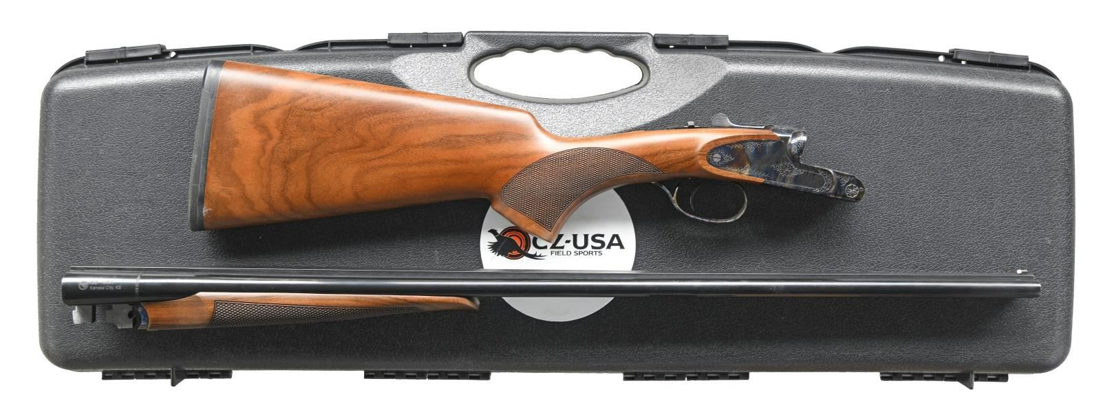 Cal. 410 3". S# 21C7644. Bbls. 28" solid rib choked IC & M. Bead sights. Single trigger. Case colored receiver, trigger guard & forend latch. Checkered pistol grip walnut stock & forend. UNATTACHED ACCESSORIES: factory hardcase w/ box matching numbered to gun & manual. No other tools or accessories present. CONDITION: all aspects near excellent. PROVENANCE: The Collection of Gun Sport Ltd. owned by Jon R. Thomas. (23-3474/MJC). MODERN. $1000-1500.
