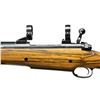 ACTION RIFLE. Cal. 416 Rigby S# R0610. These great rifles have become a world standard. This rifle has 24" medium weight barrel fitted with quarter rib holding one standing leaf express rear sight, sleeved on sling eye and front sight ramp holding gold bead with flip up white night bead. Caliber is marked on left rear. Model 76 magnum action has makers markings on left side, features model 70 type safety, drop box bottom metal and hinged floor plate with release button in trigger guard bow. Capped pistol grip stock of very nicely veined European walnut measures 13 3/4" over black "Dakota" pad. Stock features small swept shadow line right hand cheekpiece, ebony forend tip, steel grip cap, two recoil bolts and well cut point pattern checkering. Action is fitted with ERA type QD scope bases and rings. CONDITION: fine, showing limited field use. Metal has some scratches and shows some light rusting with subsequent cleaning. Bolt knob somewhat silvered as are some high edges. Stock has a fair number of light marks in its original finish with two fairly deep digs at front of forend checkering. Bore is bright and shiny. Mechanically fine. (23-421/MGM). MODERN. $4,500-6,500.