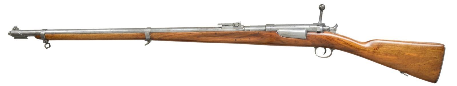 Cal. 8x58R. S# 96464. Bbl. 32 7/8". Bolt parts are mismatched but all other visible parts are matching. Receiver is dated 1915 & bbl. 1916. Ladder rear sight graduated to 2000m. Blade front sight. Walnut stock w/ bottom mounted swivels. Stock disc w/ unit marking that appears to read "LC/94". CONDITION: refinished stock w/ added varnish shows a couple small cracks, scattered dings & handling marks. Armory bright surfaces are mostly a dull gray patina w/ a few spots of light pitting, some scattered scratches & oxidation staining. Poor worn bore w/ scattered pitting. (22-3804/MJC). CURIO. $500-700.