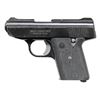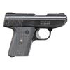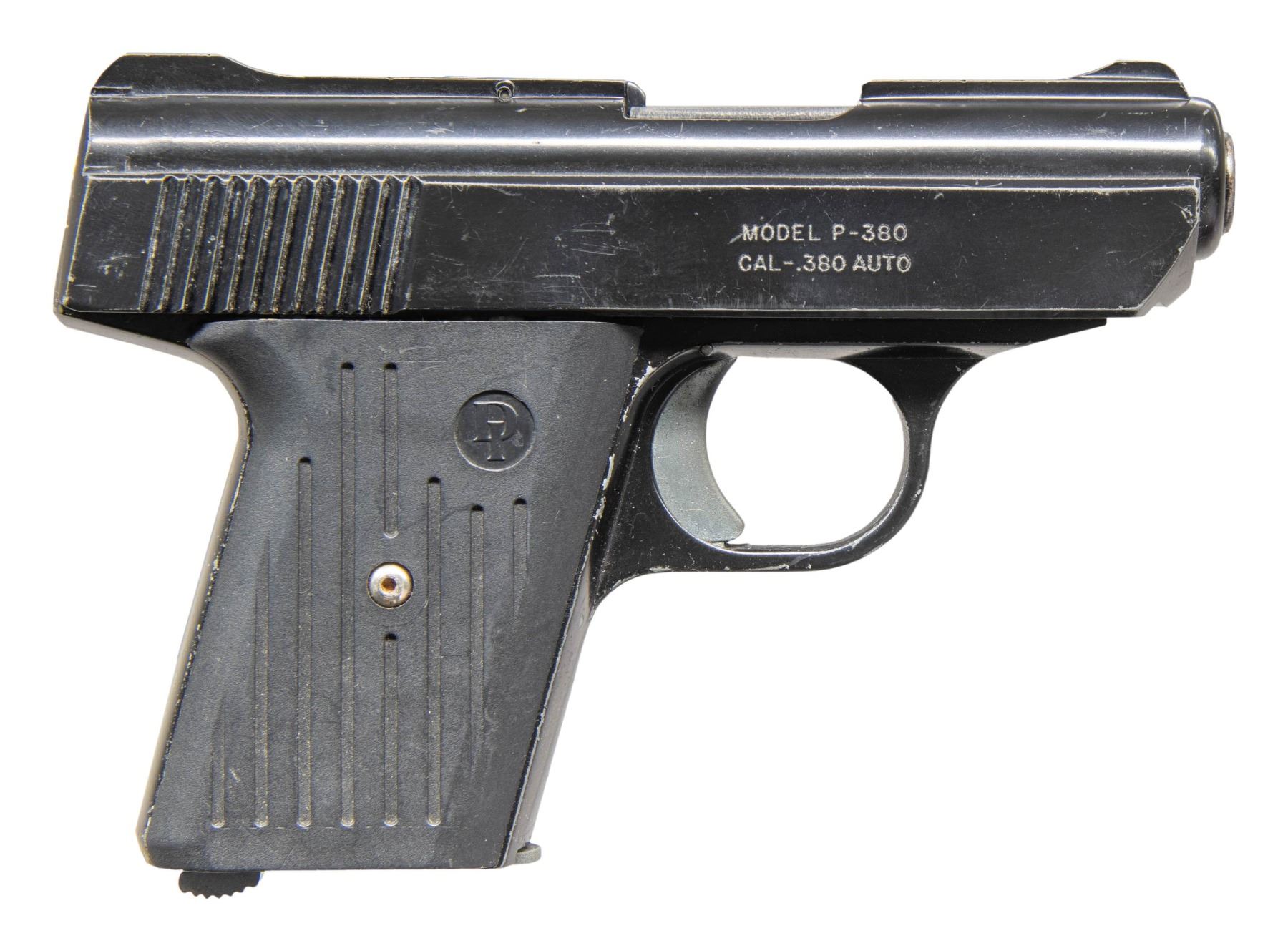 Cal. 380 ACP. S# AP385102. Bbl. 2 3/4". Blade front sight. Fixed rear sight. Blue & matte black finishes. Black grips. MAGS: 1-5 rd. UNATTACHED ACCESSORIES: matching numbered factory box in fair condition with manual. CONDITION: grips show scattered handling marks. Metal retains 92% finish with scattered flaking, handling marks & edge wear. Action functions properly when hand cycled. Very good plus bright bore. (25-6719/MJC). MODERN. $100-200.
