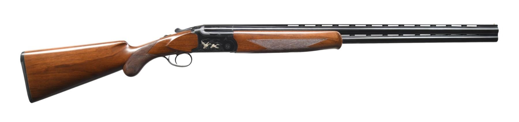 Cal. 16 ga. 2 3/4". S# 05P2696. Bbl. 28" vent rib w/ ventilated side ribs. Fixed IC & Mod chokes. Brass front bead. Blued boxlock action w/ game scene ornamentation on both sides having raised silver finished flying ducks. Top lever has silver finished double headed eagle trademark. Single selective trigger. Extractors. Schnable tipped forearm & round knob walnut stock w/ cut checkering. LOP: 14 1/2" over thin black sporting clays style pad. WEIGHT: 8 lbs, 1.2 oz. Mfg. in Turkey by Huglu. CONDITION: over 98% original wood & metal finish. Very good bright bores. (24-3972/DS). MODERN. $300-500.