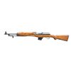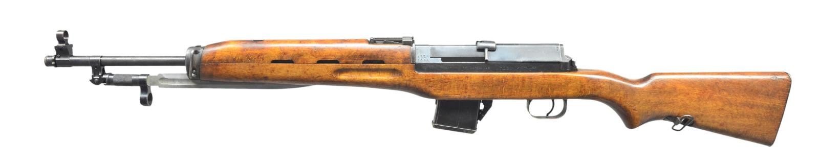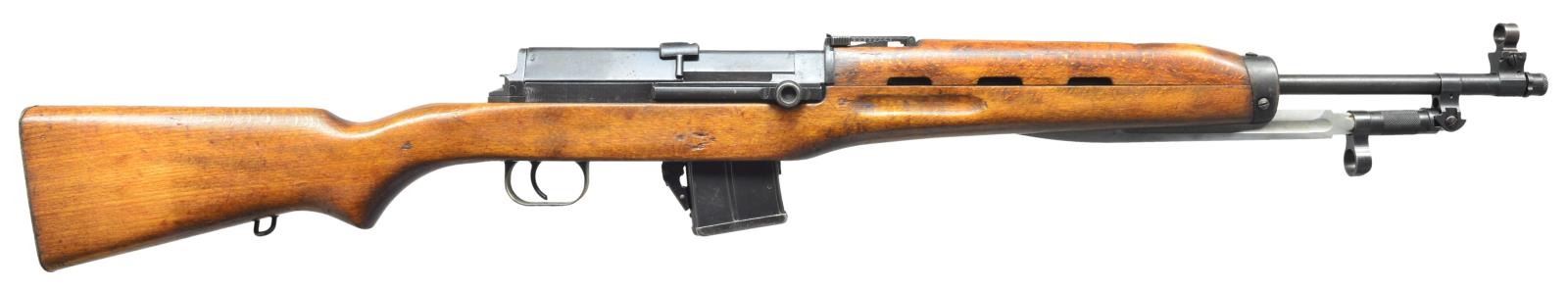Cal. 7.62x39. S# 2848. Bbl. 20 1/2". The Rasheed rifle was the answer to the UAR search for an intermediary sized cartridge & because of the popularity of the Soviet 7.62x39 rd. it made perfect sense. A heavy, machined service rifle w/ a unique locking detachable mag. system. Full length hardwood stock & bayonet extremely similar to the then common SKS. Hooded front sight. Rear tangent sight marked in Arabic. Mechanism safety located at rear of receiver. Sling swivel placement on left side of rifle. Factory threaded muzzle w/ thread protector still present. While the vast majority of markings are Arabic, the left side of the receiver adjacent to the ejection port is engraved “RASHEED 762 MADE IN UAR” in English. MAGS: 1-10 rd. CONDITION: this particular example is as nice as any this consultant has encountered to date. The stock is remarkably free of any major blemishing & the metal finish is complete & consistent. The action is extremely tight & the mag. locks in positively. Bayonet locks tight both in open & closed position. Bore is clean w/ decent rifling. Fire control mechanism appears to function correctly when cycled by hand. (21-2505/JZ). MODERN. $400-600.