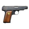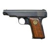 Cal. 32 ACP. S# 98259. Bbl. 3.5". Mfg. 1919-1924. Hammerless auto loading pistol designed by Heinrich Ortgies, manufactured in Germany following WWI. Serrated slide w/ integral sights. Blued steel frame & slide. Backstrap safety. Bottom magazine release. Hardwood grips w/ early brass medallion bearing "D", (Deutsche). Left side of slide marked "DEUTSCHE WERKE / WERK ERFURT" & on right side "ORTGIES PATENT". Frame, below barrel, forward of trigger guard marked w/ serial number & "GERMANY". MAGS: 1 early 8rd. marked 9mm on left side & 7.65 on right side. CONDITION: Finish is complete & consistent w/ only very light thinning at muzzle & some high spots. Grips have small impressions & appear structurally sound. Bright bore w/ strong rifling. (22-5694/JZ). CURIO. $250-350.