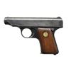 Cal. 25 ACP. S# 77464. Bbl. 2.75". Mfg. 1919-1924. Hammerless auto loading pistol designed by Heinrich Ortgies, manufactured in Germany following WWI. Serrated slide w/ integral sights. Blued steel frame & slide. Backstrap safety. Bottom magazine release. Hardwood grips w/ early brass medallion bearing "D", (Deutsche). Left side of slide marked "DEUTSCHE WERKE / WERK ERFURT" & on right side "ORTGIES PATENT". Frame, below barrel, forward of trigger guard marked w/ serial number & "GERMANY". MAGS: 1 original 6rd marked "Cal. 6.35" on floor plate". CONDITION: Finish is complete & consistent on frame w/ thinning & light patina on slide. Grips have small impressions & appear structurally sound. Bright bore w/ strong rifling. (22-5696/JZ). CURIO. $150-250.