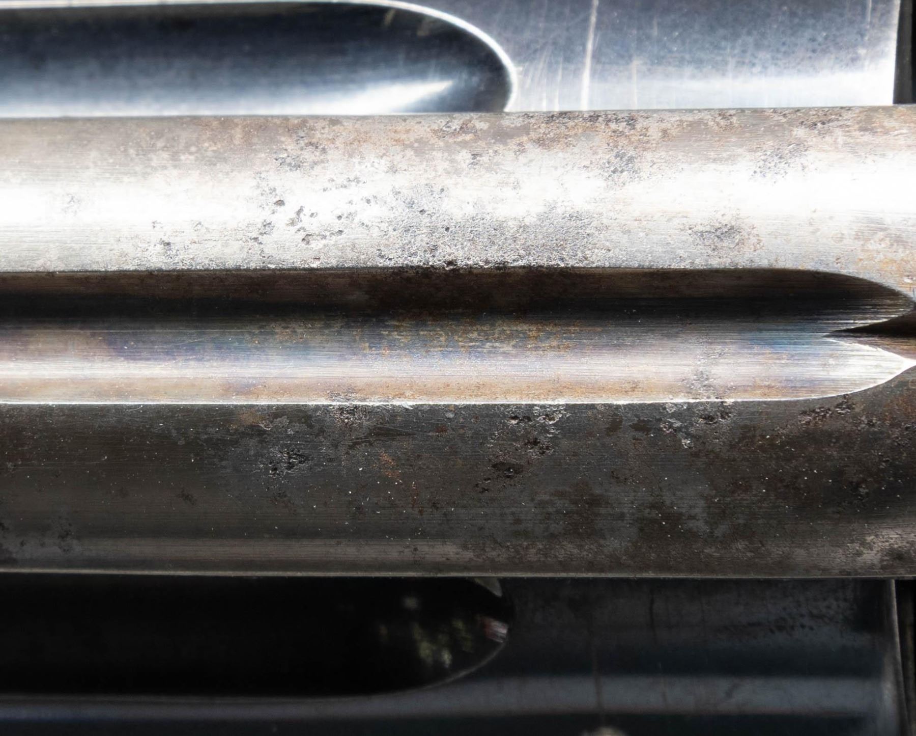 Poor: No original finish, possibly some major parts replaced, loose but functional mechanics, active or heavy external rust, poor bore with heavy pitting and little or no rifling visible.