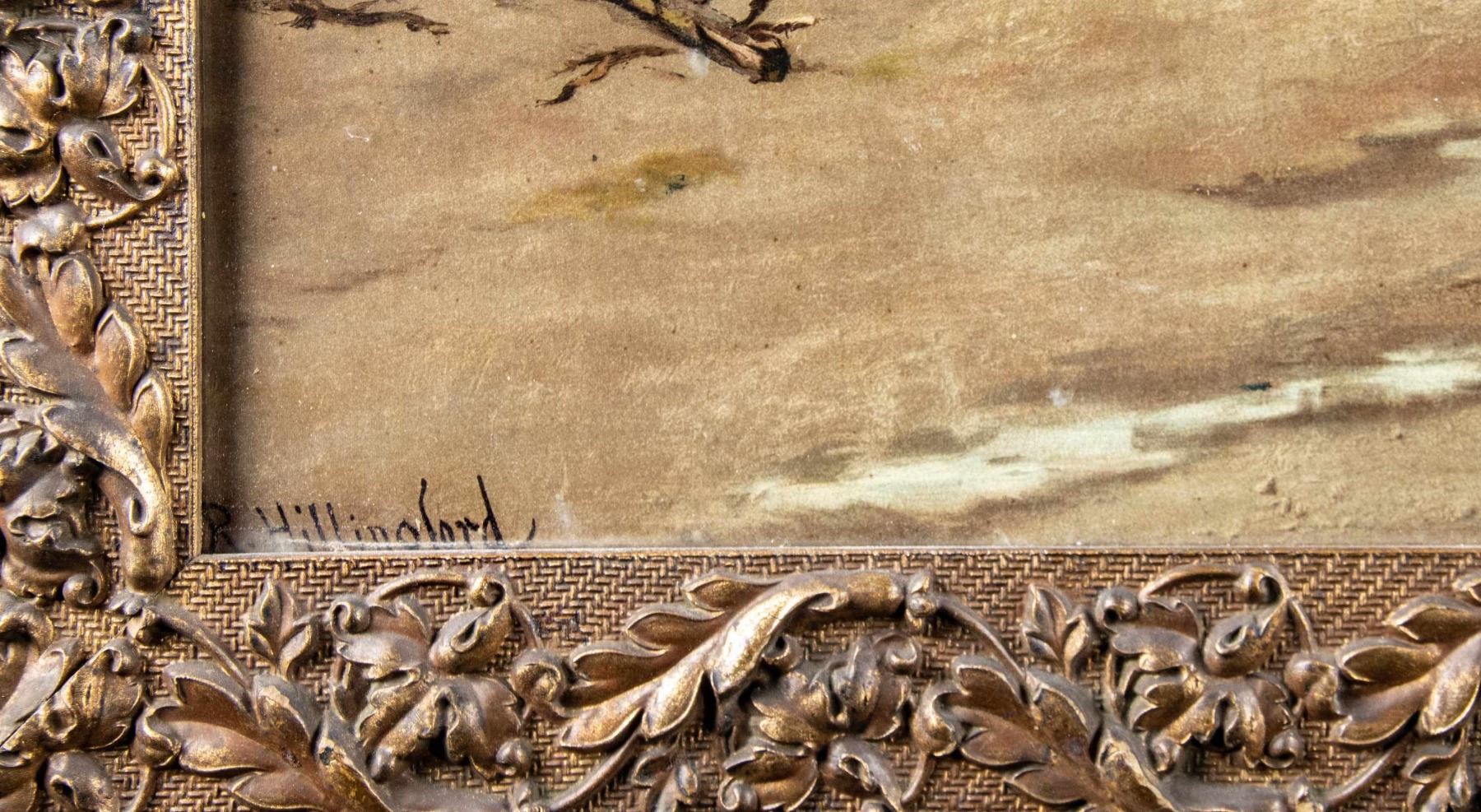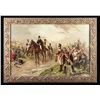 Print of the Duke of Wellington on horseback surrounded by British soldiers including one at present arms with his musket. Print measures 31 1/2" in length & 20 1/2" in height. Print is in a hardwood/brass frame that has floral decorations. Frame measures 36" in length & 26" in height. CONDITION: hardwood backing has masking tape & scattered age related wear. Brass frame shows scattered tarnishing & flaking. Print shows discoloration & age related wear. (02-25830/MJC). NON-GUN. $800-1,200.